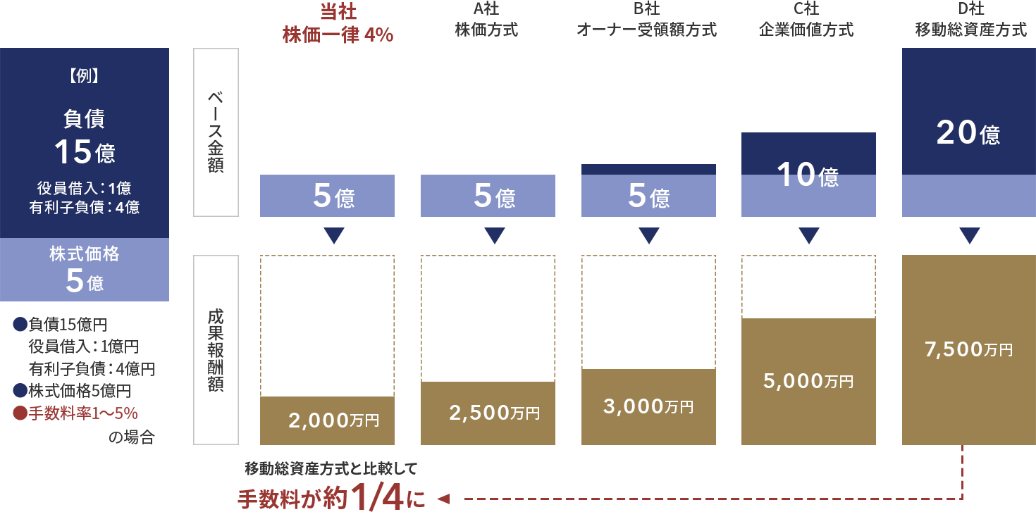 ※当社が定める「業界最低水準手数料」は、企業価値15億円以下の案件を基準としています。